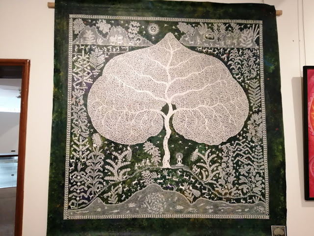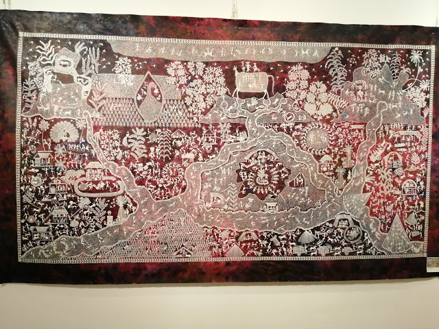 या प्रदर्शनीत 7X17 फुटांच्या भव्य तीन कलाकृती मांडण्यात आल्या आहेत. ‘तारपा नृत्य’या कलाकृतीत आदिवासींचे पारंपरिक तारपानृत्य, त्याचे आदिवासींच्या जीवनातील महत्त्व लग्नप्रसंगी आणि भाताचे चांगले पीक झाल्यावर व्यक्त होणारा आनंद आदी प्रसंगांच्या माध्यमातून मांडण्यात आला आहे. ‘कृष्णलिला’ आणि ‘कल्पवृक्ष’ या भव्य कलाकृतींमध्ये भगवान कृष्णाच्या कालिया मर्दन, पुतनावध आदी 10 प्रसंग आणि मोठ्या कल्पवृक्षाखाली ध्यानावस्थेत बसलेली व्यक्ती दर्शविली आहे.