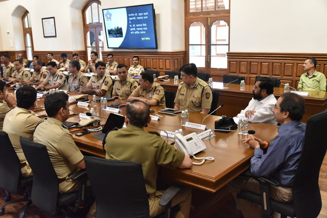 मुंबई पोलीस आयुक्त कार्यालयात झालेल्या बैठकीत गृहमंत्री एकनाथ शिंदे, मुंबई पोलीस आयुक्त संजय बर्वे व इतर वरिष्ठ पोलीस अधिकारी उपस्थित होते.