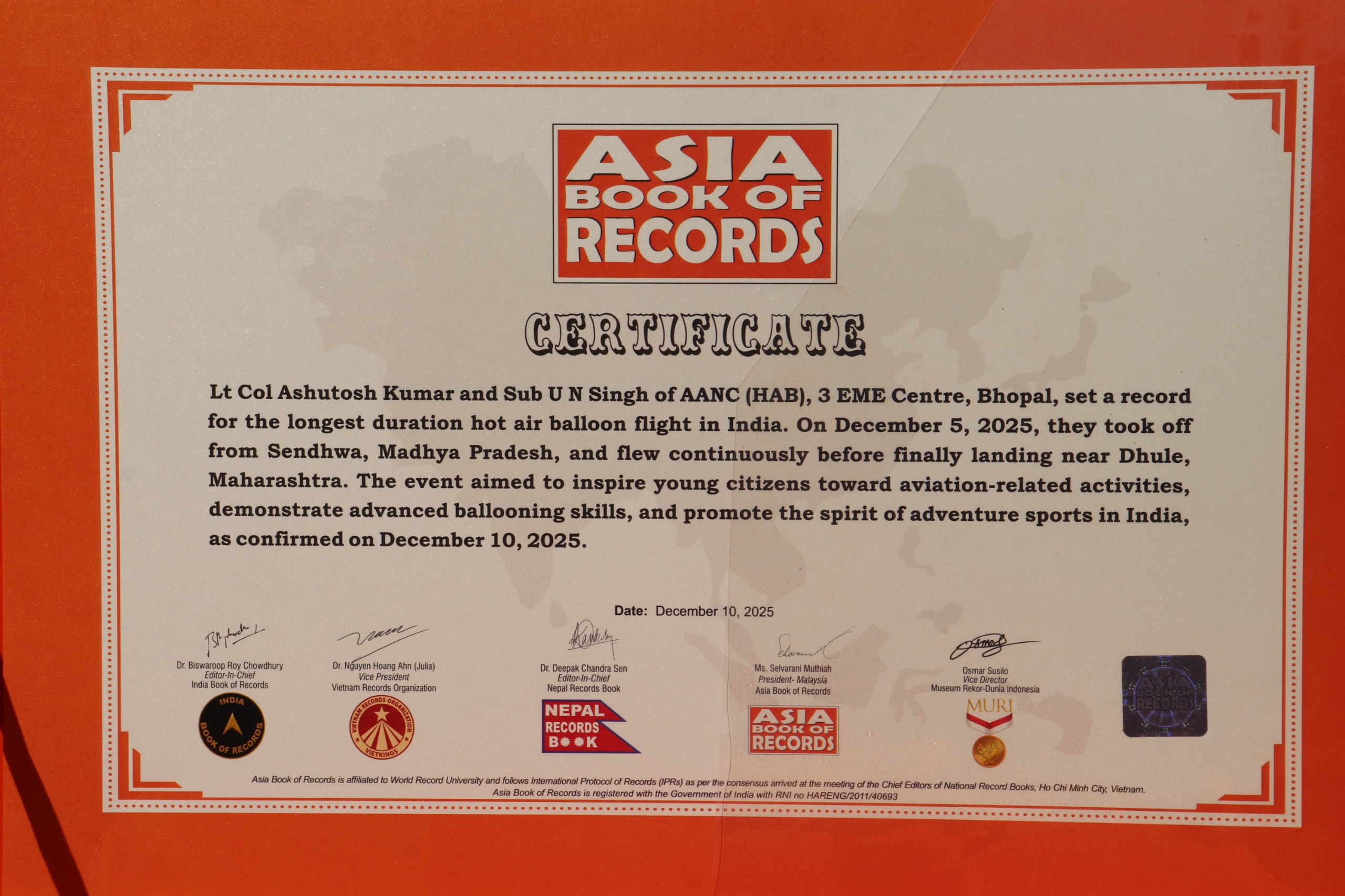 या मोहिमेचे एक प्रमुख आकर्षण म्हणजे ८ तास ४४ मिनिटांचे विक्रमी विना थांबा हॉट एअर बलून उड्डाण, ज्यामुळे त्याला भारतातील सर्वात जास्त कालावधीच्या हॉट एअर बलून उड्डाणाचा मान मिळून एशियन बुक ऑफ रेकॉर्ड्समध्ये स्थान मिळाले. ही उल्लेखनीय कामगिरी संघाची अपवादात्मक व्यावसायिकता, सहनशक्ती, संघसामर्थ्य आणि विमानचालन उत्कृष्टतेसाठीचा ध्यास दर्शवते.