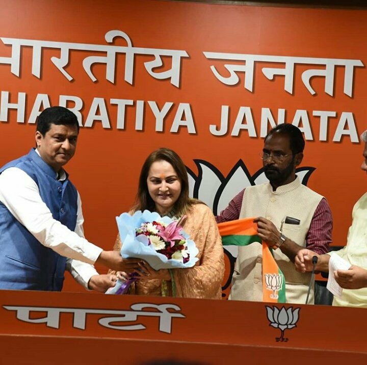 नवी दिल्ली: हिंदी चित्रपटसृष्टीतील प्रसिद्ध अभिनेत्री व समाजवादी पार्टीच्या माजी खासदार जयाप्रदा यांनी आज भाजपमध्ये प्रवेश केला आहे.अमर सिंह आणि आजम खान यांच्याशी मतभेद झाल्यानंतर जयाप्रदा यांनी २०१४ मध्ये आरएलडीमध्ये प्रवेश केला. आरएलडीच्या माध्यमातून त्यांनी बिजनौरमधून निवडणूकही लढवली होती.भाजपकडून जयाप्रदा यांना रामपूरमधून लोकसभेची उमेदवारी दिली जाणार असल्याचं सूत्रांकडून सांगण्यात येत आहे.पंतप्रधान नरेंद्र मोदी यांच्या सारखं खंबीर नेतृत्व करणाऱ्या व्यक्तीची देशाला गरज आहे. पंतप्रधान नरेंद्र मोदी यांच्या कार्यप्रणालीवर माझा पूर्ण विश्वास आहे, म्हणून मी भाजपमध्ये प्रवेश करत आहे, असं जयाप्रदा यांनी यावेळी सांगितलं.