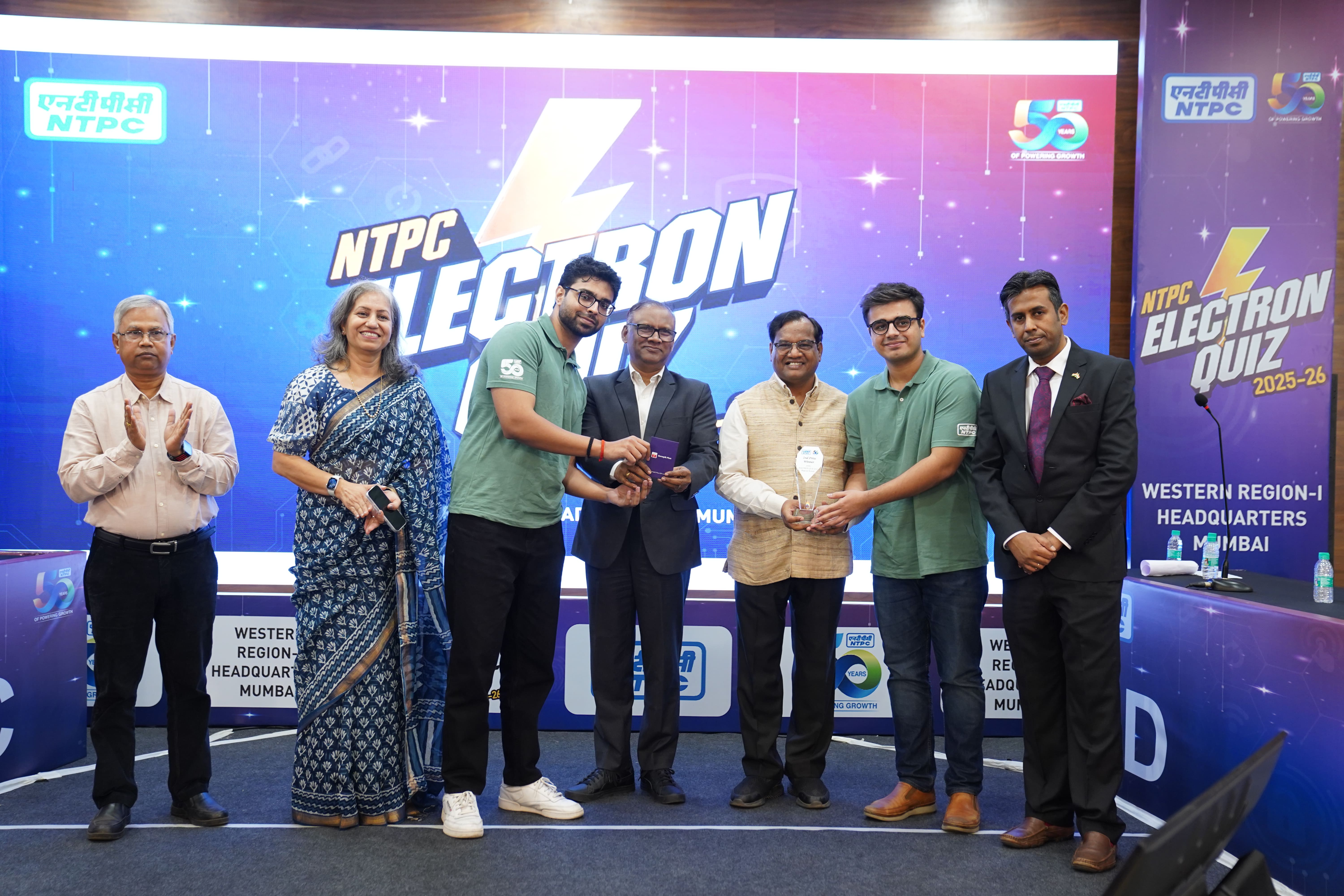 मुंबई, दि. २७: एनटीपीसी इलेक्ट्रॉन प्रश्नमंजूषा स्पर्धा – २०२५- मुंबईतील प्रादेशिक फेरीत आयआयटी मुंबईच्या प्रयाग मोहन्ती आणि केशवराम एस.या विद्यार्थ्यांनी ६०,००० रुपयांचे पहिले बक्षीस मिळवले. गुरुवारी (२७ नोव्हेंबर) एनटीपीसी म्हणजेच राष्ट्रीय औष्णिक विद्युत केंद्र पश्चिम क्षेत्र-१ मुख्यालयाच्या वतीने भारतरत्नम – मेगा सीएफसी, अंधेरी पूर्व येथे ही स्पर्धा आयोजित करण्यात आली होती.या स्पर्धेत महाराष्ट्र, गुजरात, राजस्थान, केरळ आणि गोवा येथील प्रमुख अभियांत्रिकी आणि व्यवस्थापन संस्थांचे प्रतिनिधित्व करणारे २४ संघ उत्साहाने सहभाग झाले.