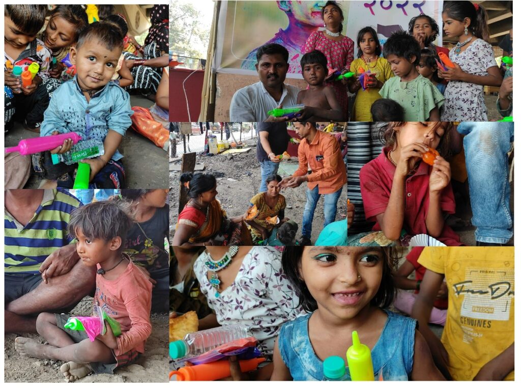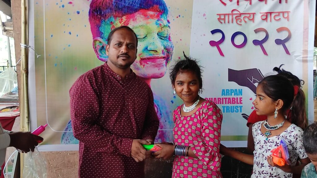 नवी मुंबई येथील अर्पण चॅरिटेबल ट्रस्ट तर्फे समाजातील वंचितांना रंगपंचमी साहित्य व अल्पोहाराचे वाटप
