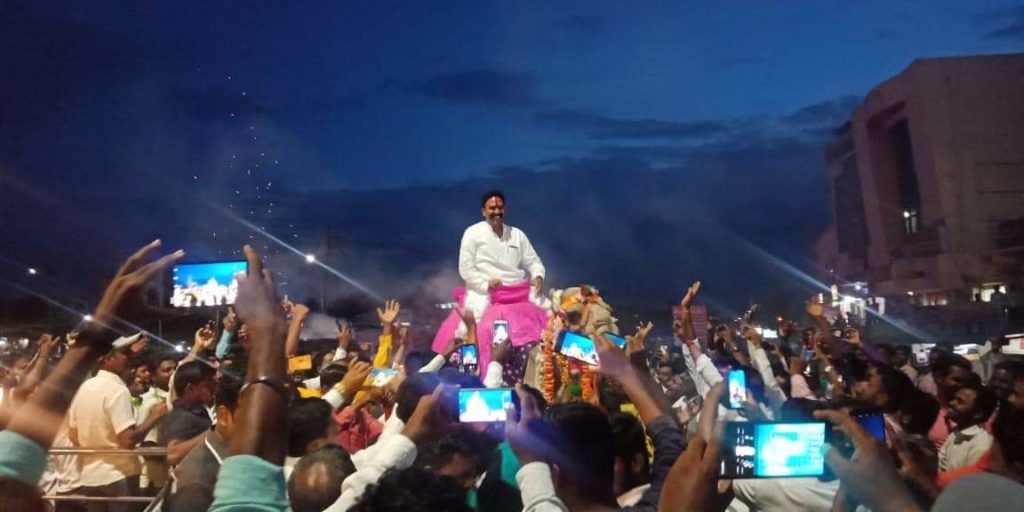 खासदार रणजितसिंह नाईक निंबाळकर यांची काढली चक्क उंटावरून मिरवणूक