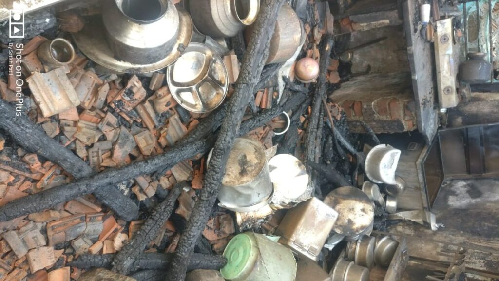 उरण तालुक्यातील वशेणी येथे आगीत घर भस्मसात झाल्यामुळे गावंड कुटुंबीयांना आर्थिक मदतीची गरज